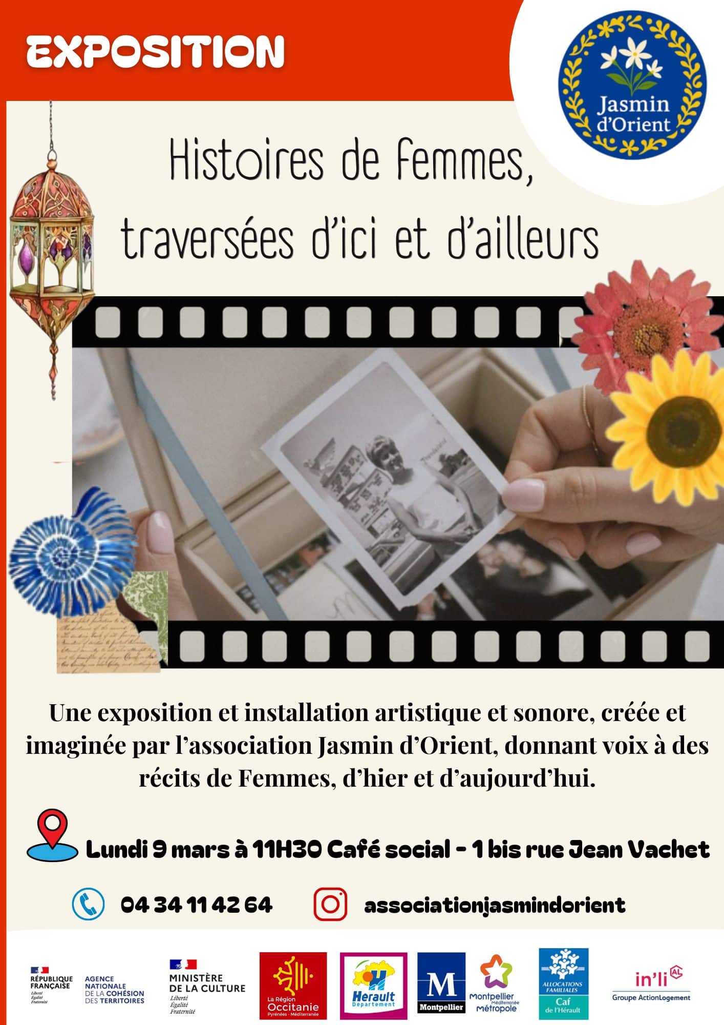 Dans le cadre de la journée internationale des droits des femmes 2026, Jasmin d’Orient et les participant.e.s au projet Arts et Culture du vendredi proposent une exposition artistique et sonore qui retrace 10 récits intimes qui traversent les frontières et les générations.